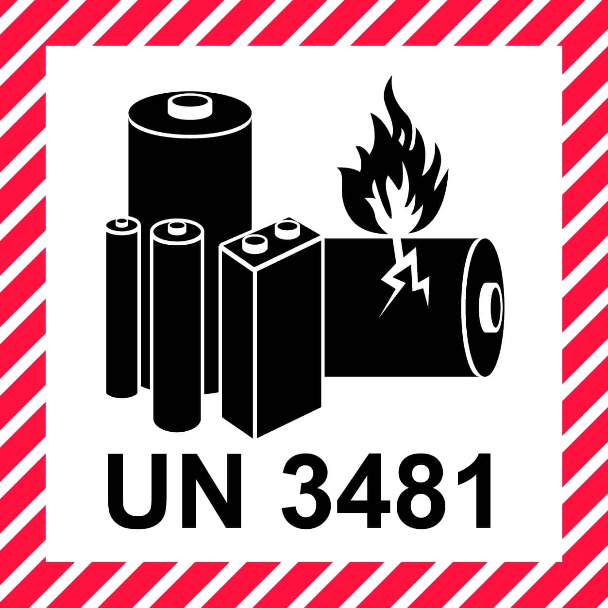 Marque de danger 10×10 cm en rouleau, Piles classées UN 3481
